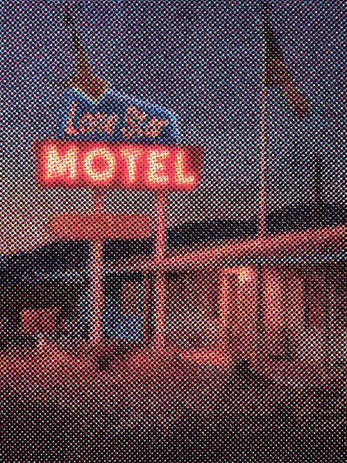 Maggie Hall creates large scale paintings that transform pop cultural imagery through a meticulous CMYK dot process using hundreds of thousands of hand applied circles. Her works begin with AI prompting and digital collage but become grounded in physical labour, turning nostalgic subjects into emotionally charged scenes.